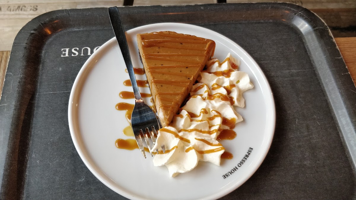 Kahvilla joulukahvi Christmas brew ja praliinikahvi sekä kookospallo ja tiskistä - 50% pelastettu toscapulla lämmitettynä.. Kaikki maistui hyvin. Itse söin toscapulla mikä oli tosi herkullinen. Ainoita kahviloita auki sunnuntai-iltana klo 18 saakka.